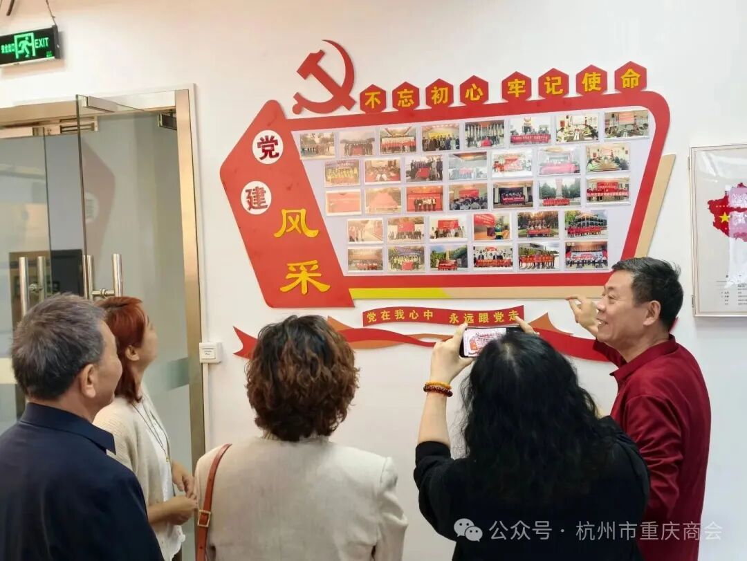 当天上午,杭州仙居商会党支部一行在杭州市重庆商会本月轮值会长、组织兼宣传委员、常务副会长冯世健与执行秘书长胡琦的陪同下,参观了商会文化墙。