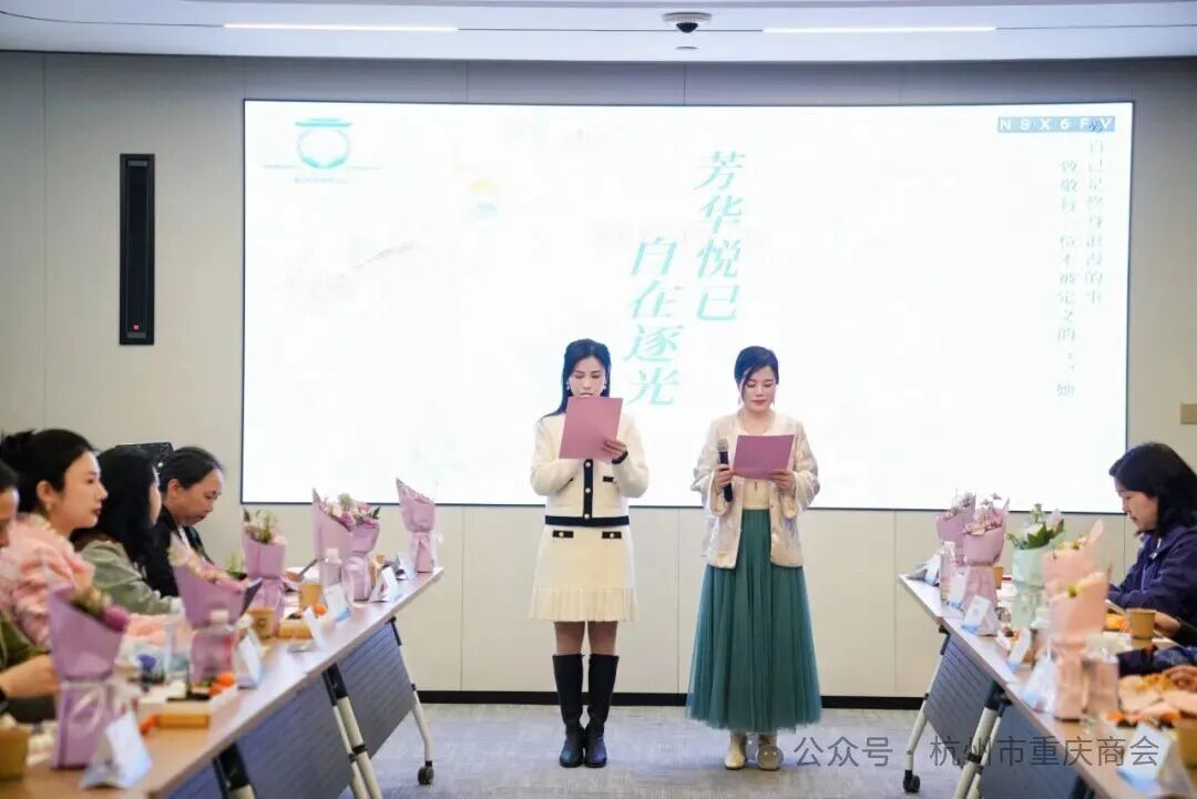 活动在本月轮值会长段意娟、邹兰温婉而有力的开场白中拉开序幕。她们代表杭州市重庆商会对各位姐妹、兄弟们的到来表示热烈欢迎,并阐释了本次活动的初衷:“商会不仅是大家事业发展的平台,更是我们温暖的家。今天,我们特意策划这场活动,就是希望姐妹们能在繁忙之余,停下脚步,感受生活之美,分享内心感悟,放松身心,交流情感。同时,也要为三月份生日的家人送上最真挚的祝福。愿我们每一位女性,都能在这最好的年华里,好好爱自己,追随光,成为光,自在逐光。”
