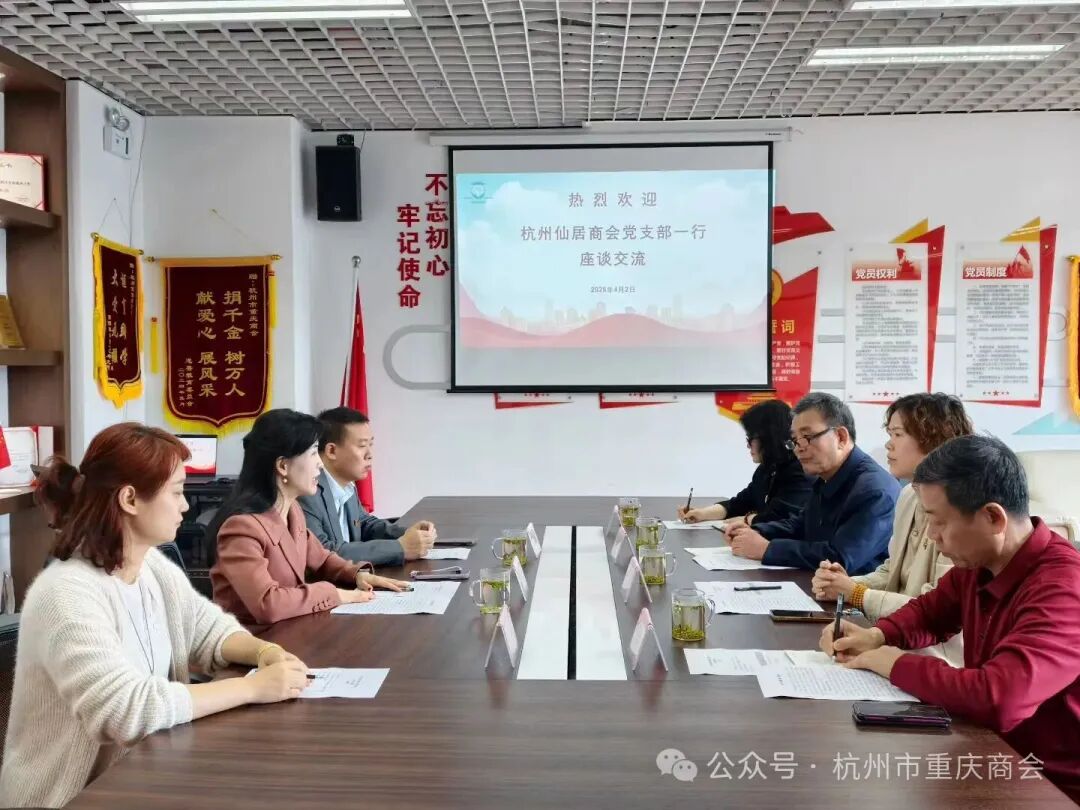 四月的杭州,春意盎然,生机勃勃。为进一步加强商会间的交流合作,推动党建工作与商会建设深度融合,4月2日上午,杭州仙居商会副会长吴菲美,党员、副秘书长张炳贤,党建联络员、副秘书长王建设,副秘书长李健青一行到访我会,开展党建工作交流活动。