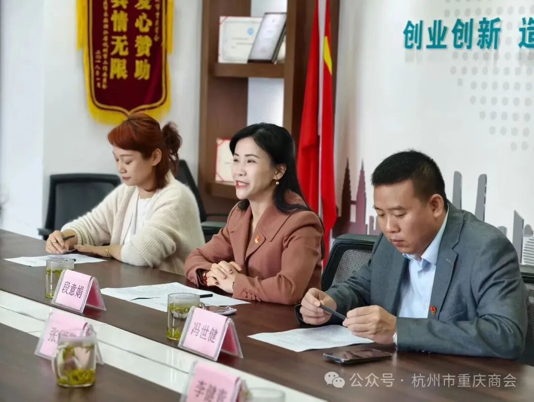 杭州市重庆商会党支部书记、常务副会长段意娟,本月轮值会长、常务副会长、组织兼宣传委员冯世健,执行秘书长胡琦热情接待。