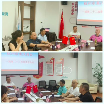 2020年8月25日下午,杭州市重庆商会一届第二十二次常委会会议在商会会议室召开。会议由轮值会长宋永红、吴成勇主持,会长王勇、执行会长朱波、常务副会长倪良森、冯刚、殷相苏、副会长白宜财、秘书处人员查静敏、胡琦出(列)席会议。